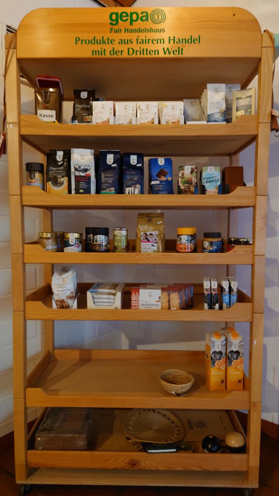 Im Gemeindeleben werden vorzugsweise fairgehandelte Produkte verwendet.Der Weltstand im Gemeindehaus hat zu den Büroöffnungszeiten und nach den Gottesdiensten geöffnet:Montag 09.00 – 12.00 UhrMittwoch 08.00 – 12.00 UhrDonnerstag 17.30 – 19.30 UhrFreitag 09.00 – 12.00 Uhr